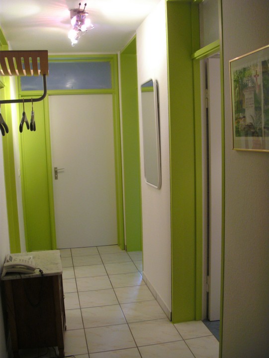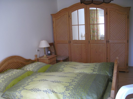 Die Wohnung im Eichenweg (ca. 58 qm) befindet sich im EG eines Mehrfamilienhauses. Schlaf- und Wohnzimmer sind getrennt. Das Wohnzimmer ist mit einer gemütlichen Coach, einem Esstisch und einer Vitrinenregalkombination eingerichtet. Für eine dritte Person steht dort noch ein weiteres Bett zur Verfügung. Die separate Küche ist voll ausgestattet. Im großen Badezimmer befindet sich eine Waschmaschine. Der Balkon ist von beiden Zimmern zu erreichen. Ihr Auto können Sie in einer abgeschlossenen Garage parken. Haustiere sind nicht erlaubt.